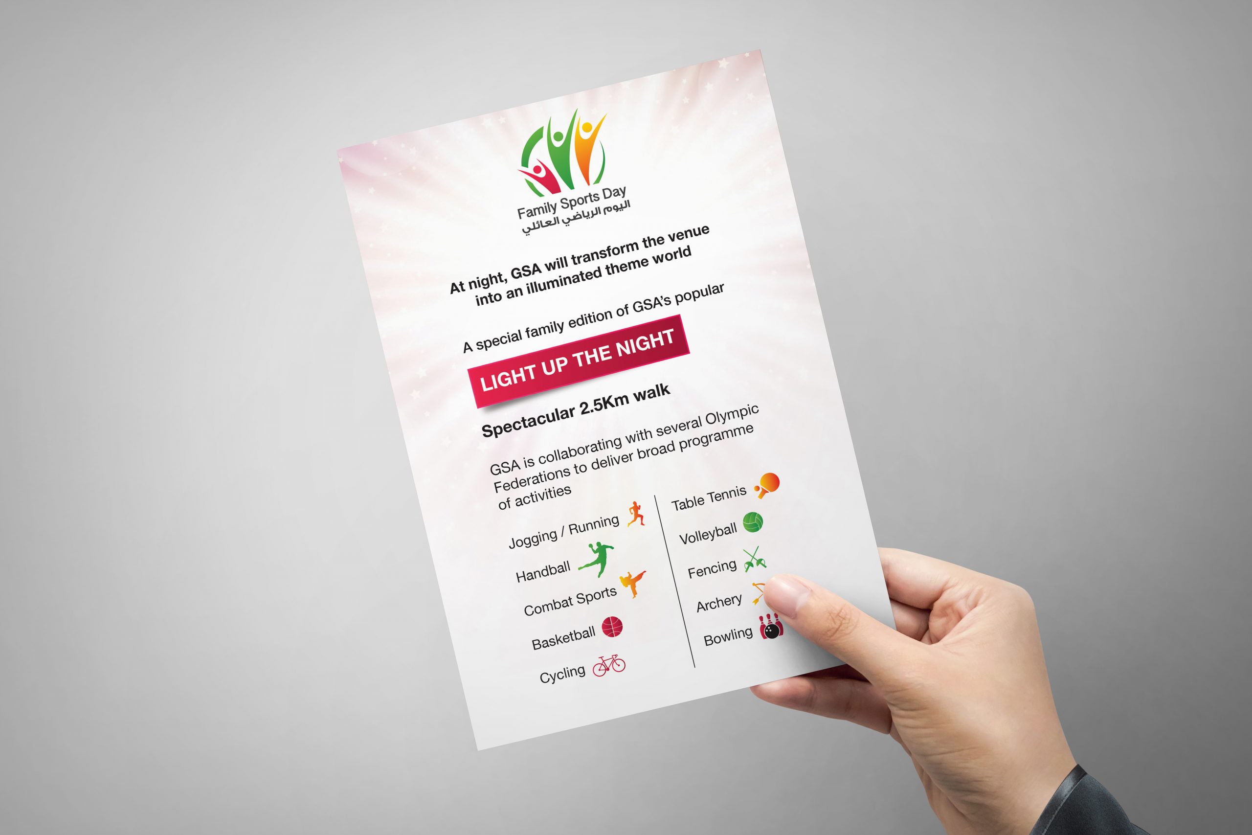 I created a dynamic visual identity for Family Sports Day, a community event in Saudi Arabia celebrating family-friendly sports and activities. The work included the logo, flyer, promotional assets, and merchandise designs, all crafted to capture the event’s fun and energetic spirit.